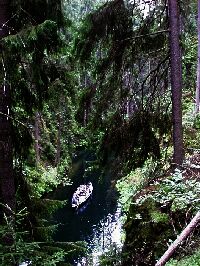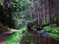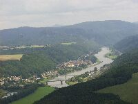 Abends: TschechienEs liegt nahe, als Fußgänger nach Herrnskretschen (Hrensko) zu gehen. Bedingung: gültiger Personalausweis. Bis zum Ort sind es von unserer Pension ca. 30 min zu laufen. Zwischen dem deutschen Kontrollpunkt und dem tschechischen liegen ca. 1000m. Hier ist zollfreie Zone, Duty Free. Nach dem tschechischen Übergang ging es erst richtig los: Vietnamesenmarkt. Die ganze Straße lang. Was das schlimmste ist, auch der Ort Herrnskretschen ist in vietnamesischer Hand. Der gesamte Ort ist durch ihre Buden und Verkaufsstände verschandelt. Aber es gibt auch feine Restaurants. Beispiel: zweimal Suppe (handgemacht), einmal Gulasch mit Knödel, einmal Schweinebraten mit Knödel, als Nachspeise Palatschinken mit Schlagsahne, 3 Budweiser, einmal "Becherovska", zweimal Rotwein: zusammen 26,00 DM. |