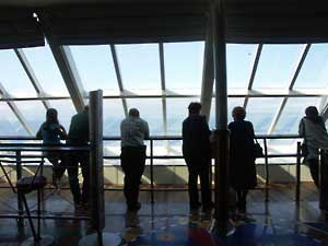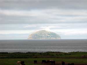 Nach einem Superfrühstück u.a. mit Joghurt und viel frischem Obst fuhren wir an die Westküste, vorbei am Alisa Craig. Wie ein riesiger Muffin liegt die felsige Vogelinsel in der graublauen See. Nach einer kurzen Fotopause fuhren wir weiter zum Stranraer Fährhafen. Wir fuhren mit einer Katamaran – Schnellfähre in ca. 1 ½ Stunden nach Belfast. |