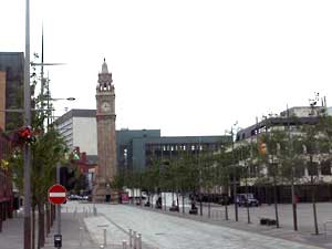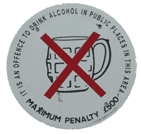 In Belfast begannen wir gleich mit der Stadtrundfahrt. Zuerst fuhren wir durch das Hafenviertel mit schönen, zu Wohnungen ausgebauten alten Speicher- und Fabrikgebäuden. Überall fielen uns die Schilder mit einem durchkreuzten Bierglas auf: Alkoholverbot auf öffentlichen Plätzen! |