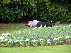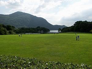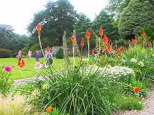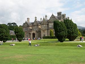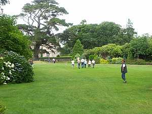 Siebenter Halt: Am Muckross House. Hier gibt es einen sehr schönen Garten, den man mit Pferdekarren Durchfahren kann. Aber wie immer haben wir dafür keine Zeit. Statt dessen laufen wir über den feinen englischen Rasen, denn der ist zum Betreten da! Blumen über Blumen und riesige Hortensienbüsche wachsen hier. Viel zu wenig Zeit. |