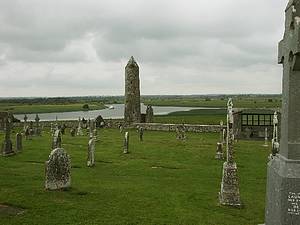 Die Weiterfahrt führt nun nach Clonmacnoise. Das ist eine alte Klosteranlage und hier stehen an den Grabstätten die keltische Hochkreuze. Wir spazierten über die Grabfelder, hier setzte dann auch Regen ein. Auf Ulla wirkte der Ort dort wenig mystisch. Sie hat sich hier wahrscheinlich eine richtige Inszenierung vorgestellt, mit Nebelmaschinen, Donnerblechen und so. |