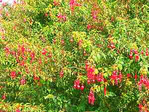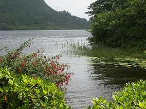 Heute unternahmen wir eine Rundfahrt über Galway durch den Connemarra Nationalpark, zuerst immer an der Küste entlang. Hier ist auch ein sehr steiniger Boden, die Felder sind mit Steinmauern eingefasst, einmal um die Grundstücksgrenzen zu kennzeichnen, zum Anderen aber auch um der ständigen Winderosion vorzubeugen. Für uns Touristen sieht diese Landschaft natürlich fantastisch aus, das Leben hier ist aber sehr hart. Zum früheren ärmlichen Leben kam durch den heutigen Tourismus doch etwas Wohlstand. Bedingt durch das milde Klima gibt es hier viele Blumen, riesige mannshohe Fuchsienhecken und Hortensienbüsche. Die meisten Hortensien blühen blau, bedingt durch den eisenhaltigen Boden. |