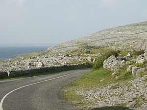 Weiter fuhr unser Bus nun Richtung Galway, wir zweigten dann aber nach Limerick und Lisdoonvarna ab. Hier führte uns die Straße durch das Burrengebiet an der Küste entlang. Das Kennzeichen dieses Gebietes sind die vielen Steine, so dass es kaum fruchtbaren Boden gibt. Wir hatten jetzt auch Nebel und leichten Regen – so lernten wir auch den „Irish Mist“ kennen. So wird wirklich dieser feine Sprühregen bezeichnet. Die Straße war typisch Irish: sehr schmal und viele Serpentinen. Aber wir erreichten gut unser Hotel in Lisdoonvarna. Lisdoonvarna ist für Festlichkeiten, Tradition, Musik und historische Sehenswürdigkeiten berühmt. Es befindet sich in der Grafschaft Clare. Lisdoonvarna ist das einzige aktive Kurseebad in Irland. Bemerkenswert ist die Tradition von "Matchmaking" eine populäre Tätigkeit der Einheimischen. Hier geht es um den Versuch neue Brautpaare zu arrangieren! |