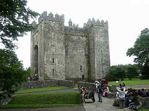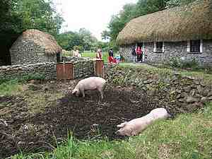 Weiter zu Bunratty Castle und seinem Folk Park. Wir fühlen uns ins 19. Jahrhundert zurück versetzt. Eine Burg mit Wohnturm, in den Hütten noch Torffeuer (verbreitet einen herrlichen wohltuenden, süßlichen Geruch). Wir besuchten die Schule, den Krämer. Natürlich gibt es auch einen Pub. Auch in das Herrenhaus durften wir hinein. Hier braucht man für die Besichtigung Zeit, mindestens 3 Stunden. |