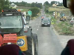 Der Rückweg führte uns wieder durch Galway und von dort fuhren wir dann an der Küstenstraße entlang. Vorbei an Dungaire Castle bei Kinvara in der Galway-Bucht. Wir fuhren extra einen kleinen Umweg, immer an der Küste entlang. Es war eine wirklich "steinige" Strecke und die Straße war verdammt schmal. Wenn man zu sehr in die Hecke fährt, um den Gegenverkehr Platz zu machen... Vielleicht ist darunter noch eine Steinmauer? Unsere Reiseführerin fährt nur Gebrauchtwagen, hat schon mehrere Spiegel und Radkappen eingebüßt, von den vielen Kratzern durch die Hecken ganz zu schweigen. |