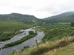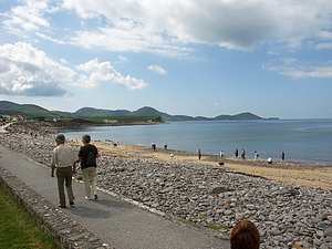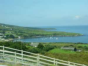 Der nächste Halt war dann in Waterville. Das ist ein schön in einer Bucht gelegener kleiner Badeort, der Lieblingsurlaubsort von Charlie Chaplin. Die Bucht ist der Badestrand, allerdings sehr steinig. |