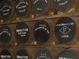 Weiter ging's nach Midleton, hier wollen wir die alte Jameson Whiskey Destillery besuchen. Die alte Brennerei ist heute ein Museum mit Führung, die kostet 6 €. Drei ausgewählte vermeintliche "Whiskeykenner" aus unserer Reisegesellschaft durften nach der Führung an einer Verkostung teilnehmen und bekamen sogar eine Urkunde für ihre feine Whiskeyzunge. Alle anderen Besucher bekamen nur Einen. Ich nur einen Halben, da Ulla an der Führung nicht teilnahm. Aber kosten wollte sie doch. Der Geschmack hat uns aber überzeugt und so kauften wir eine Flasche Jameson Whiskey, 12 Years old, für 34 €. Als Souvenir - so unsere Rechtfertigung. Ich werde mir gleich einen einschenken. Ich schreibe diese Zeilen fast ein Jahr nach unserer Reise und die Flasche ist noch Viertel voll. Ist eben ein guter Tropfen für besondere Anlässe. |