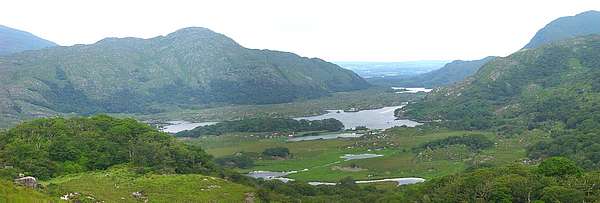 Jeder macht hier Halt: Ladys View. Ein wunderschöner Blick auf die Seen von Killarney: Upper Lake, Mukross Lake, Lower Lake, und dem Tal mit den Gap of Dunloe. |