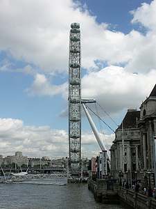 wir heute das ideale Wetter - Fernsicht. Von Camden Town fahren wir mit dem Doppeldecker-Linienbus zur Westminster Abbey und sehen schon das Rad. |
