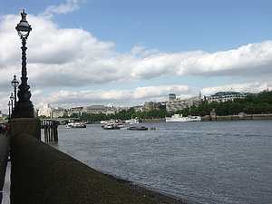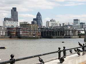 Nach diesem Erlebnis gingen wir am rechten Themseufer Richtung Tower Bridge. In den 5 Jahren seit unserem letzten Besuch hat sich doch einiges verändert. Bis auf eine Stelle ist die "Uferpromenade" nun durchgängig begehbar. Es war nun schon weit nach Mittag und wir wollten nun auch etwas essen. Hinter einer Kirche war ein Fest. Hier luden verschiedene ländliche Regionen zu kulinarischen Kostproben ein, die im Kirchengarten gleich verspeist wurden. Der riesige Andrang war nichts für Ulla und so besuchten wir einen Pub, der mit Fish & Chips warb. Gab es allerdings nicht. Ulla bestellte sich Shrimps mit Pommes, ich mit Rücksicht auf unserm Geldbeutel nur ein Bier. Die Rücksicht war auch angebracht: Die nicht gerade überwältigende Portion kostete stolze 12 €. Ich kaufte mir dann in der nahen Passage eine Tüte Pommes für 1,50 € und war im Gegensatz zu Ulla satt. :-) |