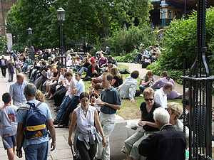 Die U-Bahn brachte uns dann wieder in die Nähe unseres Hotels. Wir mussten aber noch einen Abstecher in den riesigen Floh- und Scene-markt in Camden Town machen. Hier ist ein wahres Einkaufsparadies für schräge und schrille Typen, alle Moderichtungen sind hier vertreten. |