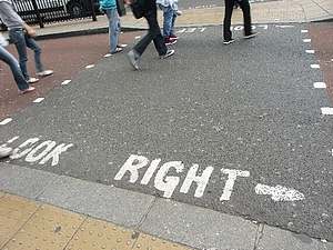 leicht, dass in England Linksverkehr herrscht. Also: At First: Look