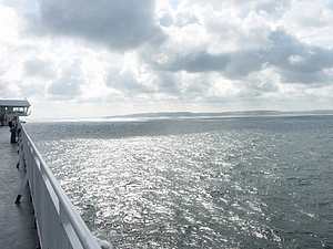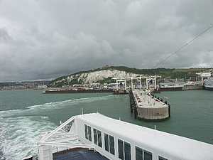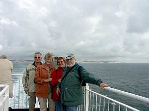 Heute nun auch die Abreise von der "Großen" Insel, zurück aufs Festland. Wir benutzen die Fähre von Dover nach Calais. Schnell noch ein paar Erinnerungsfotos mit unseren netten Tischnachbarn. Das auftauchende Ufer vor Calais kennen wir. Dort oben standen wir mit dem Wohnmobil bei unserer Reise durch die Normandie. |