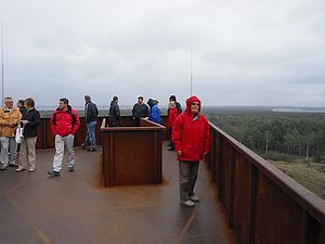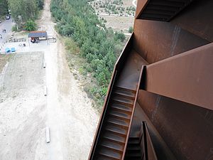 steht eine riesige Landmarke. Ein Aussichtsturm aus Stahl – 30 m hoch,