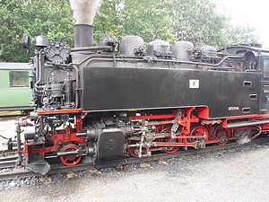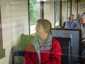 Entlang der Grenze zu Tschechien führte uns dann der Weg wieder zurück nach Jonsdorf. Am Gondelteich erreichten wir den Ort. Von dort gibt es auch einen schönen Blick auf den Nonnenfelsen. Den haben wir uns aber für ein anderes Mal aufgehoben. Unsere Wanderung bei GoogleEarth: Download Jonsdorfer Mühlsteinbrüche Hinter der Dammschänke, einem historischen Gasthof ist eine Bäckerei mit Cafè. Ein Stück Eierschecke musste es schon sein. Aber die teilten wir uns, wir wollen heute Abend auch einmal gut zu Abend essen. In der Touristinfo bekamen wir einige Hinweise zu Gaststätten mit regionalen Speisen. Am Bahnhof angekommen kam gerade ein Zug aus Bertsdorf an. Spontan entschlossen wir uns mit dem Zug bis Bertsdorf und dann gleich wieder zurück nach Jonsdorf zu fahren. Einfach um noch mal Dampf zu schnuppern. Und die Wagen waren die alten, liebevoll restauriert. Holzsitze, Ofen in der Mitte, einfach Nostalgie pur!.