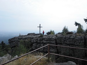 Vorbei an der Oybinaussicht (wie der Name sagt bietet sich hier ein schöner Blick auf den Oybin) erreichten wir dann die Töpferbaude. Heute am Dienstag hatte sie Ruhetag, das haben wir aber gewusst. Von den Felsen rings um die Baude bieten sich schöne Aussichten.