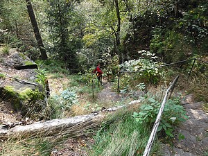 So, jetzt beginnt der Abstieg. Den gleichen steilen Weg wollten wir nicht zurück. Wir wählten den Weg übers Kammloch und ignorierten die Ergänzung auf dem Wegweiser (beschw.) Nach einer Weile merkten wir was das (beschw.) bedeutet. „Der Weg ist steil, unten wird er steiler!!“ Der Abstieg war wirklich abenteuerlich. | ![]() |