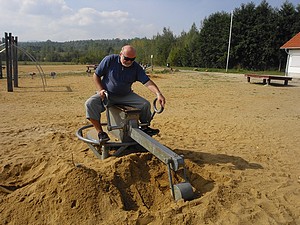 Mittwoch, 16. September Heute morgen sind wir erst mal benebelt. Sichtweite unter 50 m. Kurz nach 8 Uhr wage ich mich hinaus, die Bäckersfrau ist schon da. Frische Brötchen zum Frühstück. Na ja, wer sagt es denn, nach 9 zieht der Nebel ab und die Sonne kommt hervor. Wir wollen heute weiter fahren, uns die schönen Ortschaften Waltersdorf und Jonsdorf anschauen. Zuerst aber nutzen wir das schöne Wetter und fahren mit dem Rad eine Runde um den Olbersdorfer See. Ein renaturisiertes ehemaliges Bergbaugebiet. Und prima gestaltete Badeanlagen und Spielplätze.