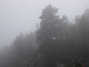 Donnerstag, 17. September Gestern nur halb, heute aber ganz benebelt. Unsere vorgehabte Wanderung auf den Hochwald verschieben wir auf morgen. Wir fahren stattdessen nach Jonsdorf hinunter und stellen uns auf den Parkplatz des Schmetterlingshauses. Von hier beginnen wir unsere Wanderung durch die Mühlsteinbrüche. Gestern haben wir uns schon eine Wegbeschreibung in der Touristinfo gekauft. Die fanden wir dann auch ganz nützlich.