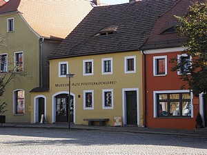 Heute ist unser letzter Tag in der Oberlausitz. Nach dem Frühstück fuhren wir nach Spitzcunnersdorf. Hier besuchten wir Ullas ehemalige Studienkollegin Margot („Mausi“). Es war ein netter Vormittag und wenn wir mal wieder in der Oberlausitz sind werden wir mal zusammen eine schöne Wanderung unternehmen. Es war schon gegen Eins, als wir von dort weiterfuhren. Wir wollen uns aber noch in Weißenberg Pfefferküchlerei anschauen. Pfefferkuchen hat nichts mit dem heutigen Pfeffer zu tun. Früher nannte man die verschiedenen exotischen Gewürze ganz einfach Pfeffer. Und in den Pfefferkuchen sind nun die verschiedensten Gewürzmischungen, alles „Geheimrezepte“. Hier in Weißenberg befindet sich die älteste Pfefferküchlerei Europas, die museal genutzt wird, in der aber auch noch zu besonderen Anlässen gebacken wird.