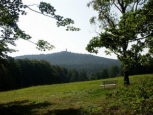 Weiter fuhren wir nun Richtung Löbau. Unser Navi suchte den kürzesten Weg und so ging es quer durch die Landschaft. Einmal mussten wir aber ihm widersprechen: Der vorgeschlagene Weg durfte nur von Fahrzeugen kleiner 2 m Breite befahren werden. Das war nichts für unser WOMO. Kurz vor 15 Uhr erreichten wir Löbau und stellten uns auf den Wanderparkplatz am Denkmal. Von dort führt auch die Strasse auf den Löbauer Berg. Und den bestiegen wir dann. Neben der Straße führt der Wanderweg steil hinauf zum Berggasthof Honigbrunnen. Koordinaten des Wanderparkplatzes: Breite 51.095381°, Länge 14.680958° |